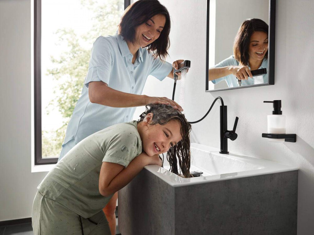 Finoris 翡诺偲使清晨的脸盆争夺战变成多样化的娱乐。因为这款来自 汉斯格雅 创意中文的最新水龙头让一切变得简单,让一切成为可能:随性洗头,愉快地给婴儿洗澡或迅速洗净套衫。